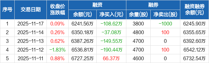 凯盛新能:融资余额6241.56万元,创近一年新低(11-17)