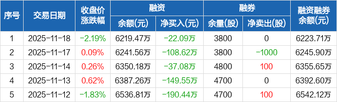 凯盛新能:融资余额6219.47万元,创近一年新低(11-18)