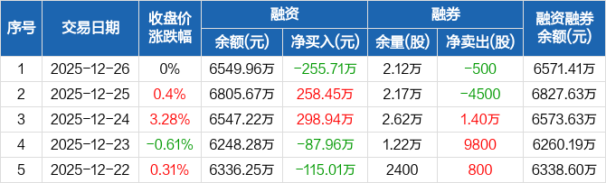 凯盛新能:融资净偿还255.71万元,融资余额6549.96万元(12-26)