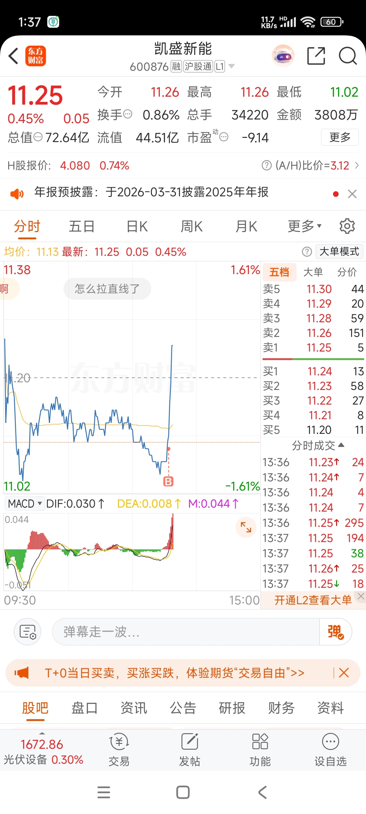 $凯盛新能(SH600876)$ 一个点拉出了涨停的效果