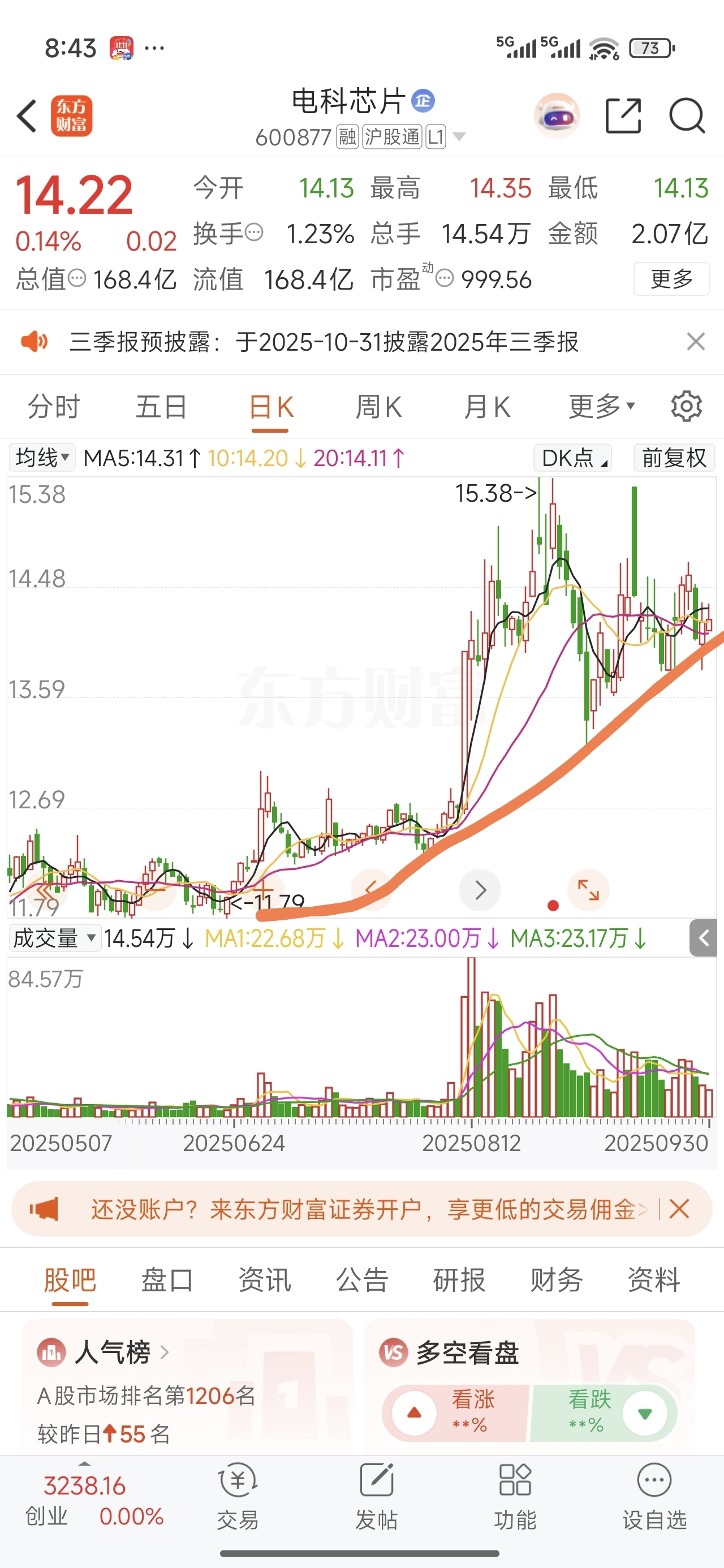$电科芯片(SH600877)$ 进入向上突破缺口区了