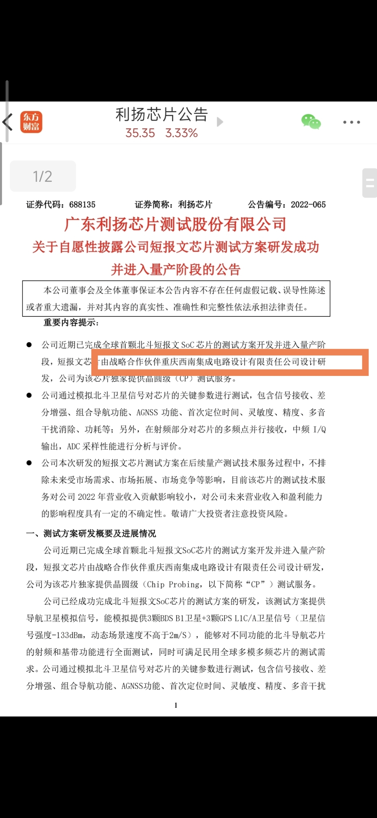 $电科芯片(SH600877)$ 电科芯片全资子公司西南集成推出全球首款北斗短报文芯片是只是它从来不宣传,利杨芯片倒是经常说它自己,别说50美元,就算10元一片,想想每年多少智能手机和智能手表吧。吊打卓胜微!