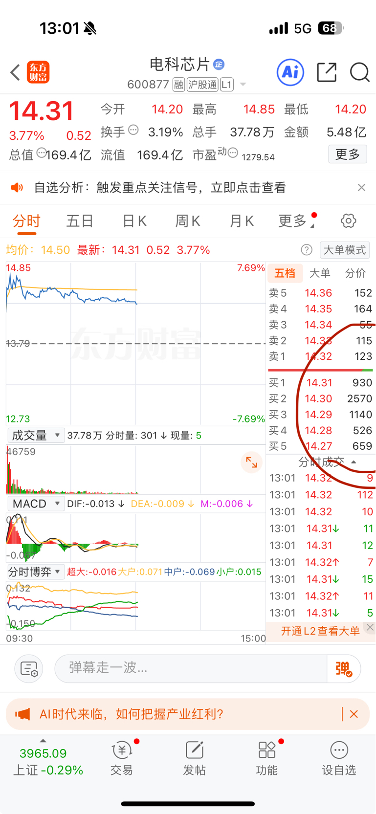 $电科芯片(SH600877)$ 这么大托单,下午看好收绿