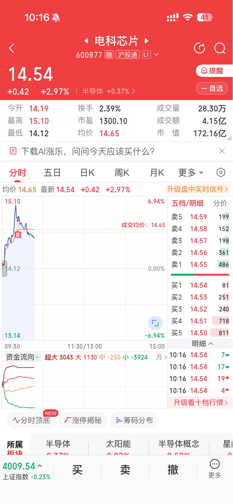 $电科芯片(SH600877)$ 难道又是我买崩的?