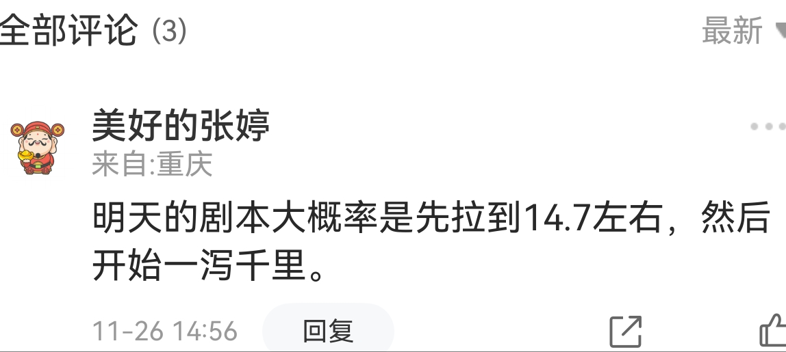温馨提示: 1.根据《证券法》规定,禁止编造、传播虚假信息或者误导性信息,扰乱证券市场;2.用户在本社区发表的所有资料、言论等仅代表个人观点,与本网站立场无关,不对您构成任何投资建议。用户应基于自己的独立判断,自行决定证券投资并承担相应风险。《东方财富社区管理规定》