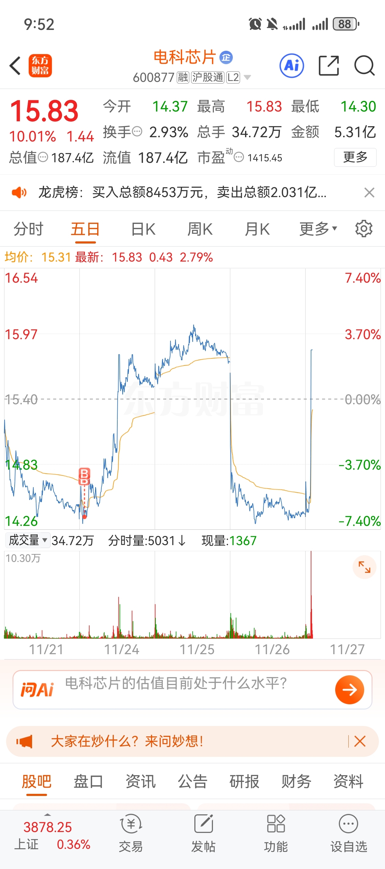 $电科芯片(SH600877)$ 过山车,有望成龙