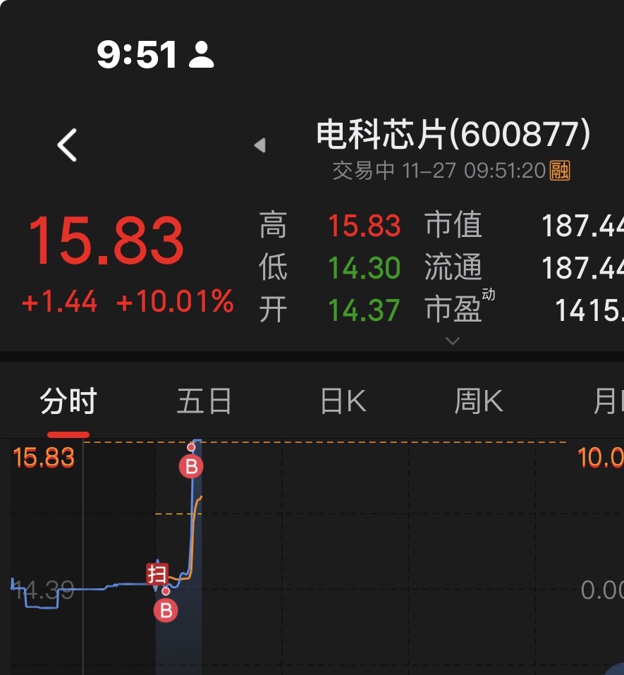 电科芯片:今天没有上龙虎榜,但强劲的利好消息,筹资10亿美元,准备收购谷歌的专利项目会刺激股价飙升,有涨停的趋势!