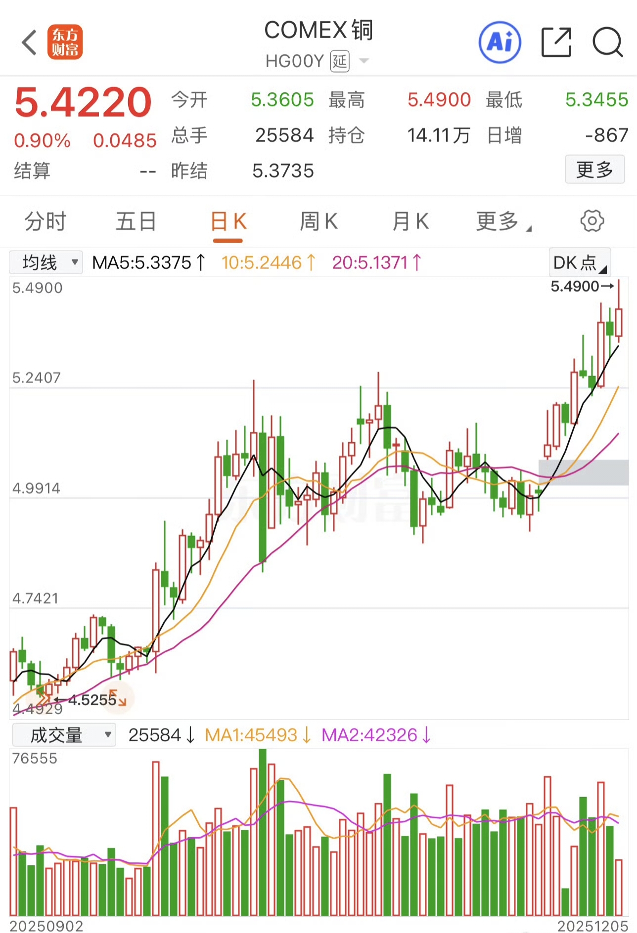 $电科芯片(SH600877)$ 看来10号美联储降息板上钉钉,铜加速上攻