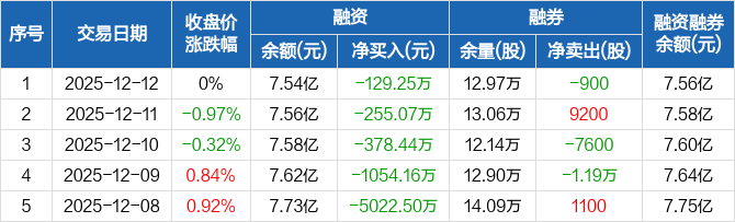 电科芯片:连续5日融资净偿还累计6839.41万元(12-12)