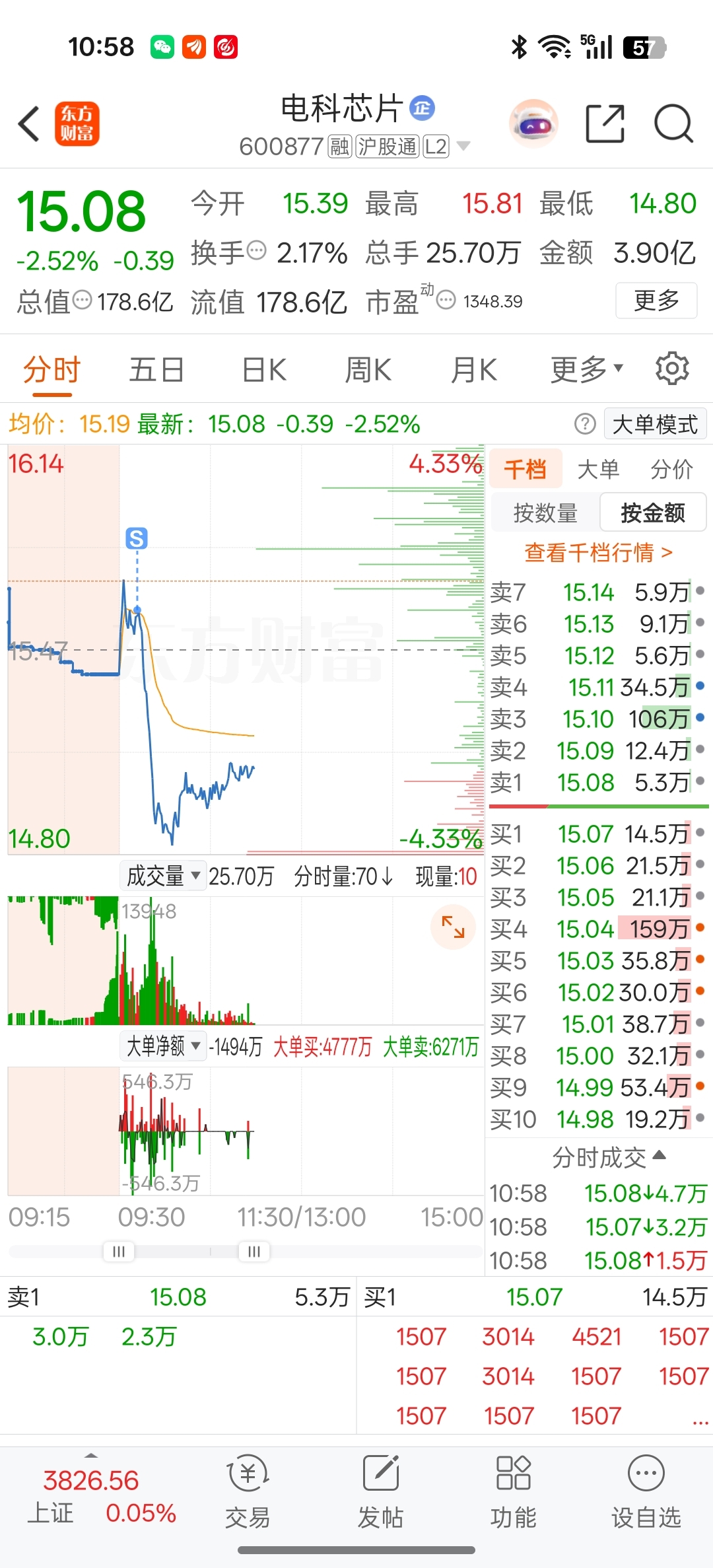 $电科芯片(SH600877)$ 抱歉!小卖了点而已!
