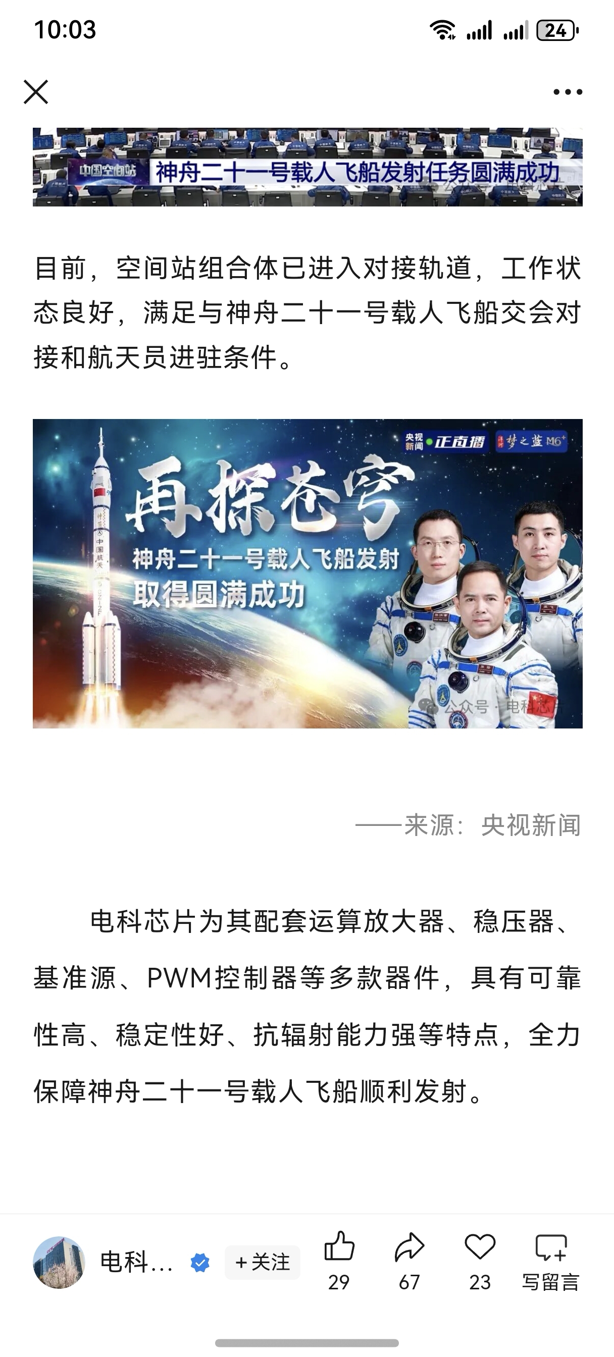$电科芯片(SH600877)$ 我是奔着宇宙空间站的配套来的,太空低轨卫星,月球基地争霸怎么都要国家队先上啊