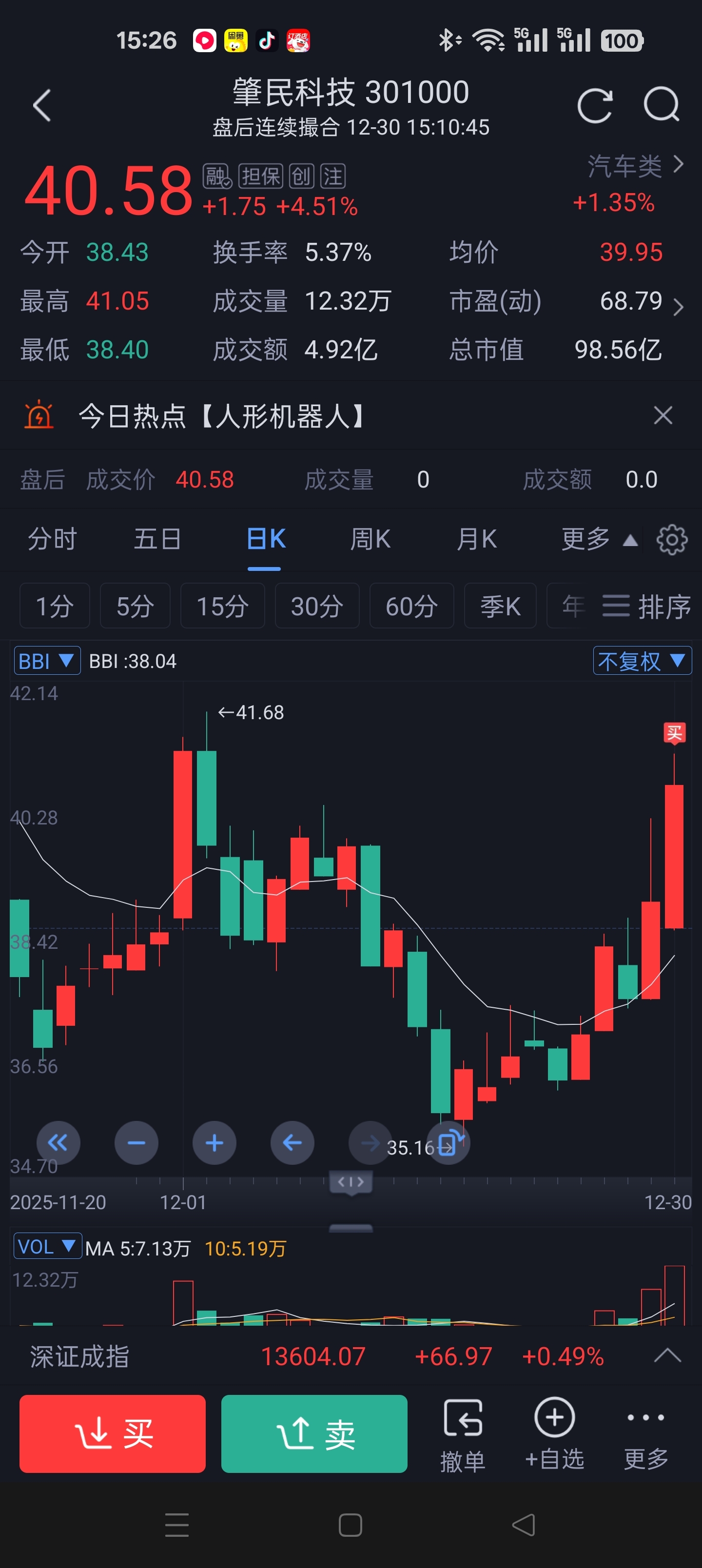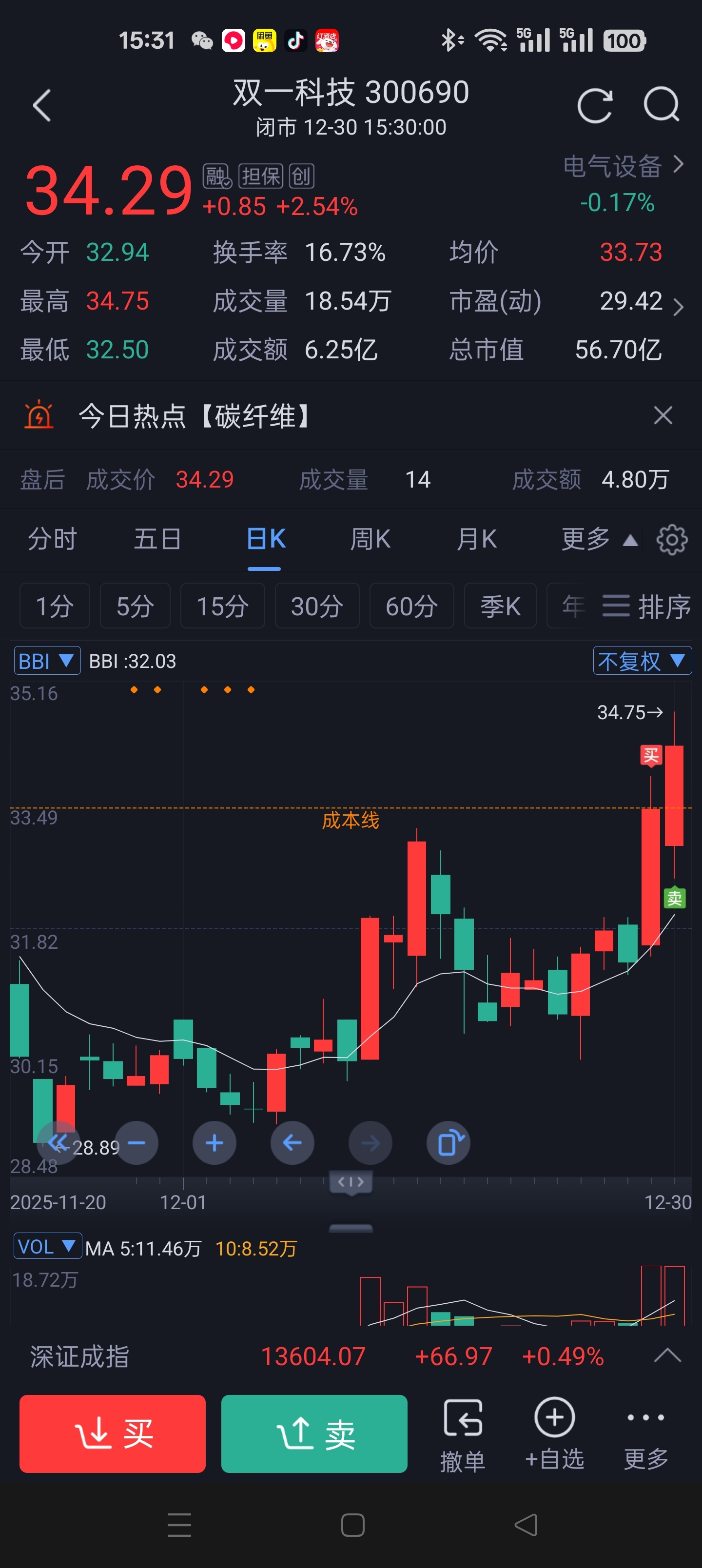 今天操作可以,卖飞了双一科技,但电科芯片还是吃肉了,尾盘全仓进了301000