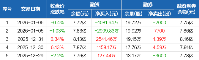 电科芯片:融资净偿还1081.64万元,融资余额7.72亿元(01-06)
