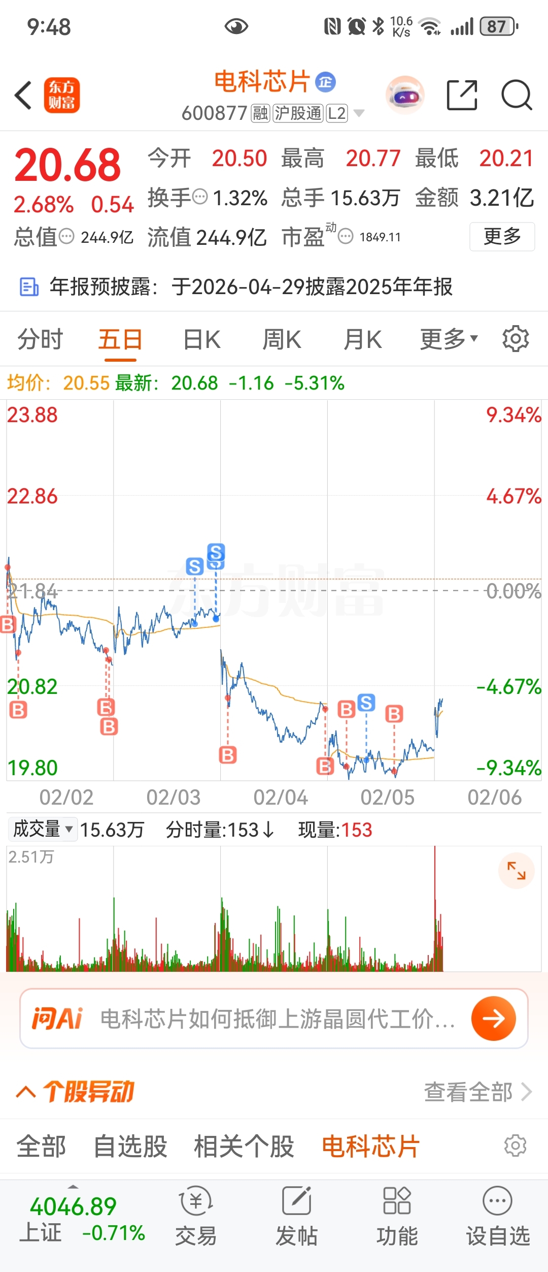 $电科芯片(SH600877)$ 今天就先不出你了拿一下看看