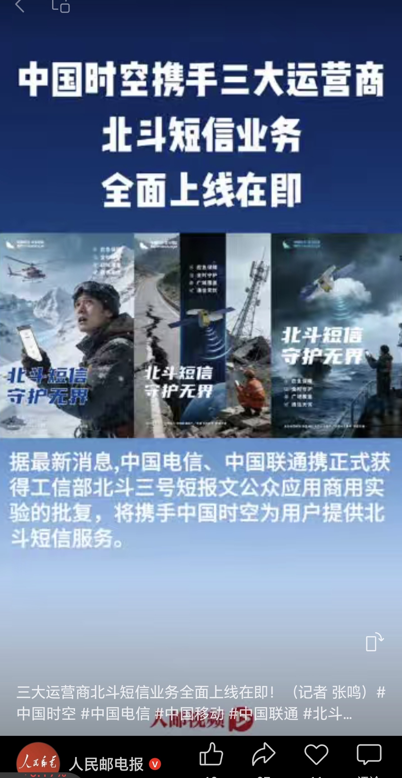 三大运营商启动北斗短报文商业化运营。这个事唐神来科普一下,手机卫星通信现在是一年
