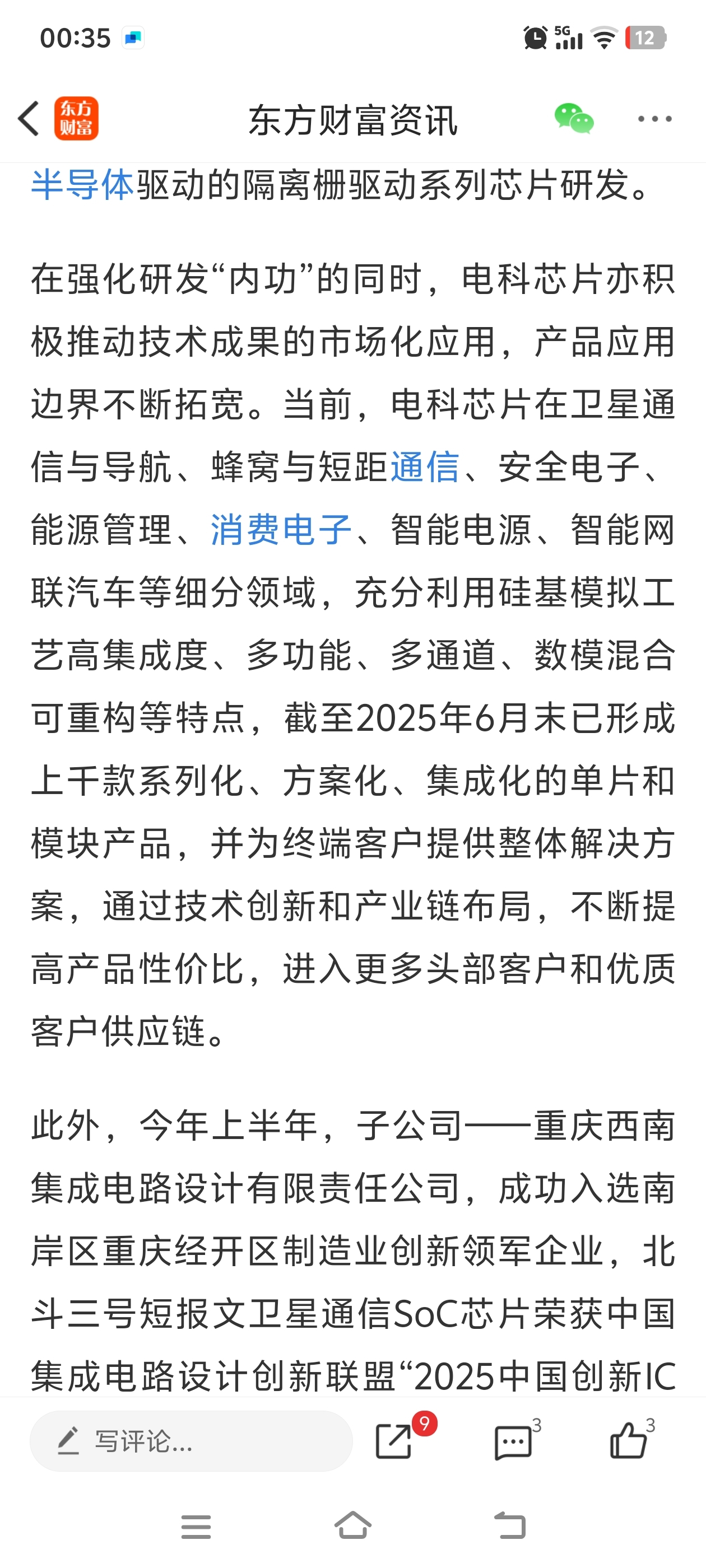 $电科芯片(SH600877)$ 说你无知你还不服,电芯是一只明牌标的股,方向非常清晰明了!卫星导航、蜂窝通信、商业航天电子、工业机器人控制、智能网联汽车,以及电源设备,半导体,放着这么多概念你不去吹,你去蹭算力!!!我真是服了