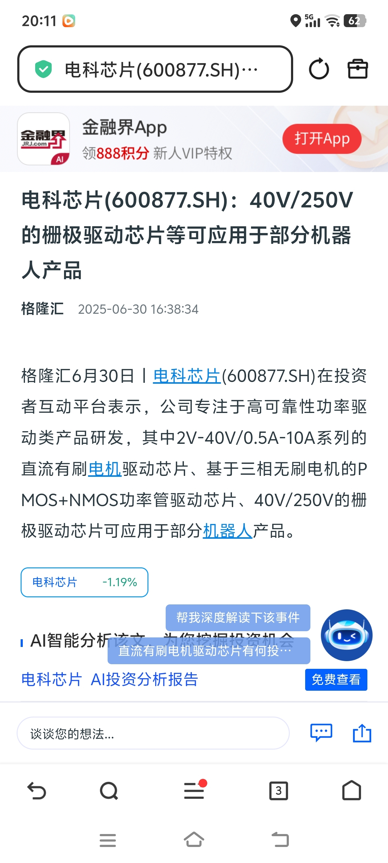 $电科芯片(SH600877)$ 机器人