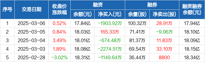 航天电子:融资净偿还1903.92万元,融资余额17.84亿元(03-06)