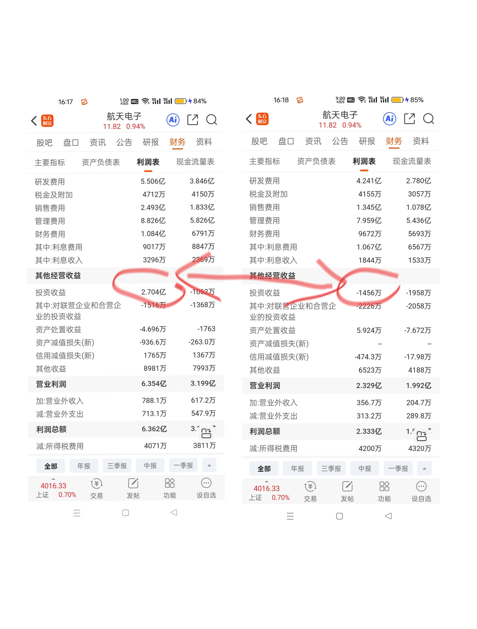 $航天电子(SH600879)$ 2024年第三季度投资收益赚2.7亿