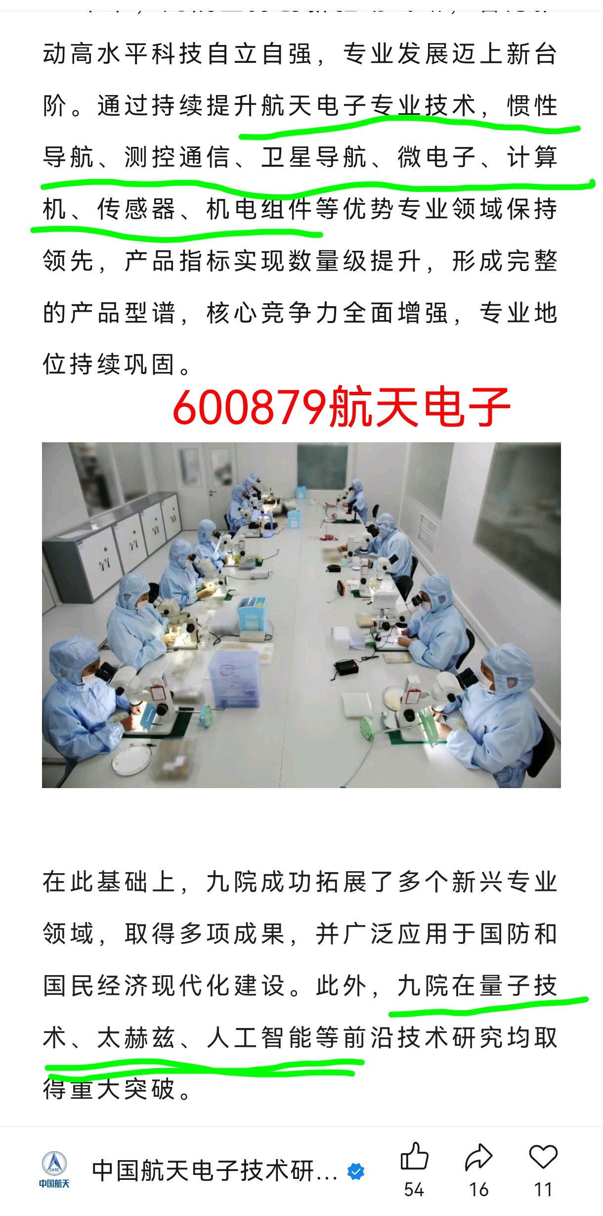 。航天电子有【北斗语言芯片】,【太赫兹】通信,【激光通信】等各式通讯。在低空,深空,地月,星际之间,大展鸿图