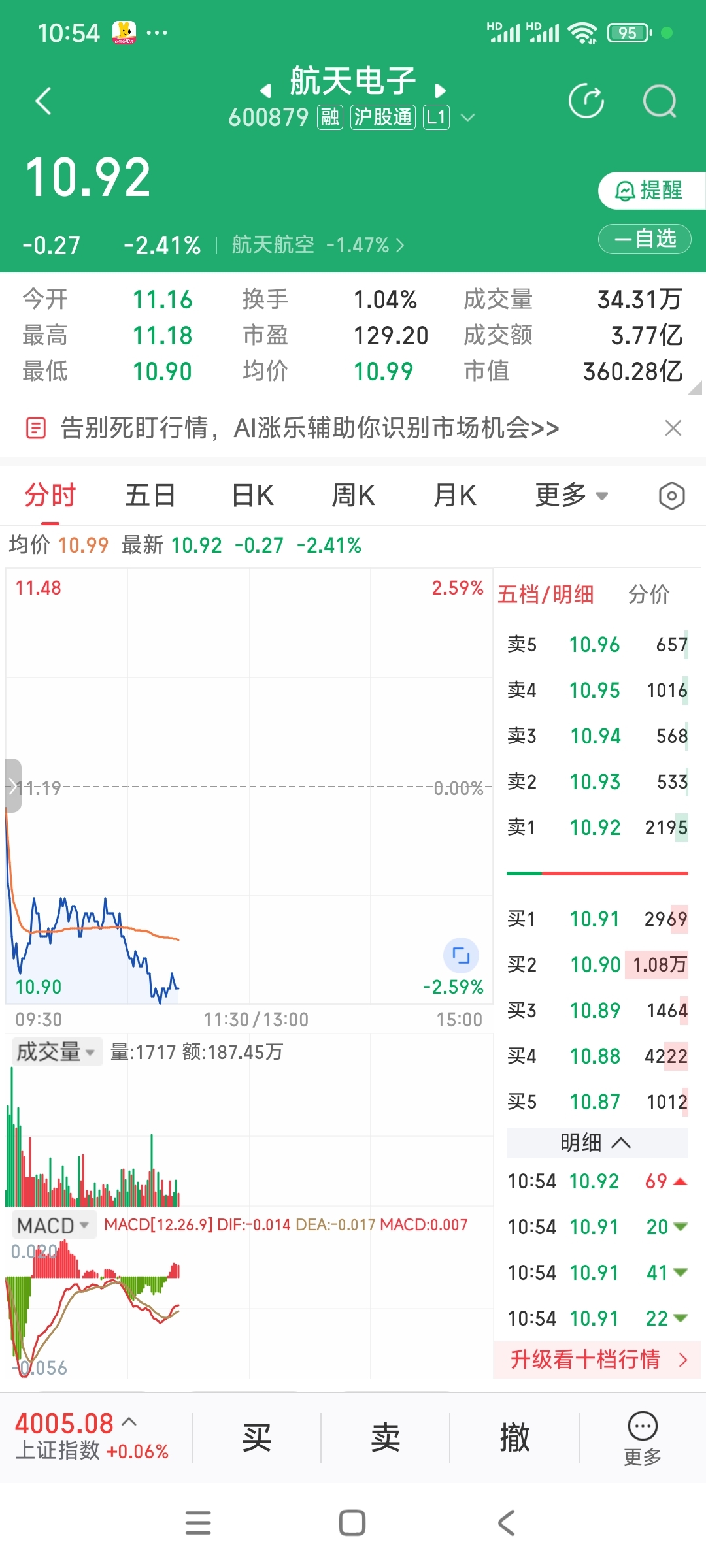 $航天电子(SH600879)$ 真的是没眼看,你就差这10800块钱吗,我补给你好了,你直接买吧