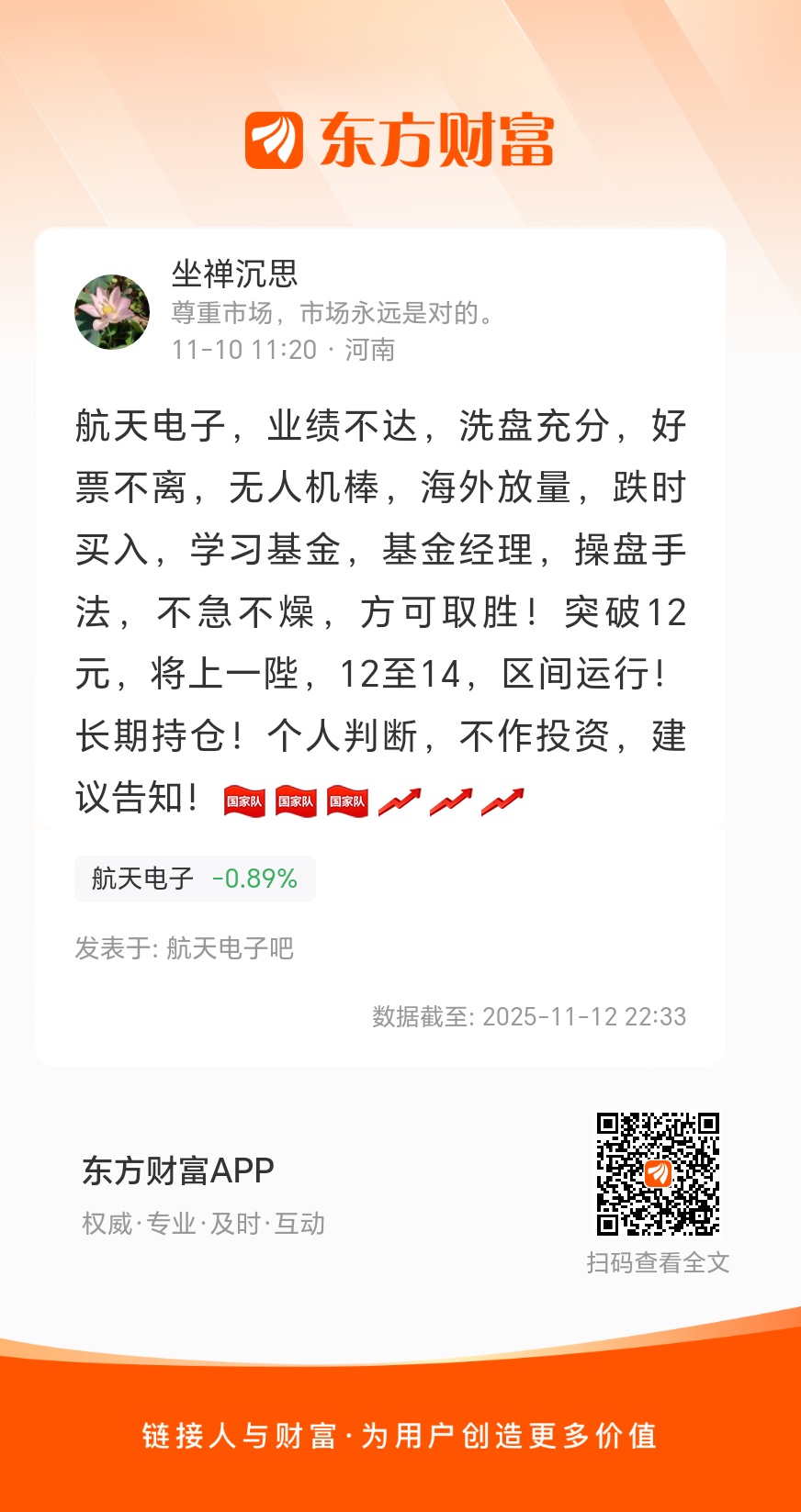 温馨提示: 1.根据《证券法》规定,禁止编造、传播虚假信息或者误导性信息,扰乱证券市场;2.用户在本社区发表的所有资料、言论等仅代表个人观点,与本网站立场无关,不对您构成任何投资建议。用户应基于自己的独立判断,自行决定证券投资并承担相应风险。《东方财富社区管理规定》
