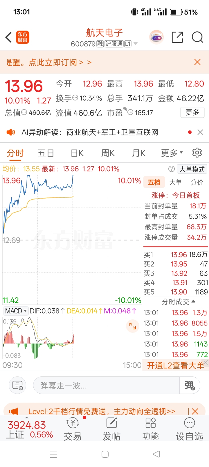 $航天电子(SH600879)$ 兄弟们,继续封板,吃肉吃肉,上午没进去的朋友,不要灰心,路漫漫其修远兮!继续努力!!!