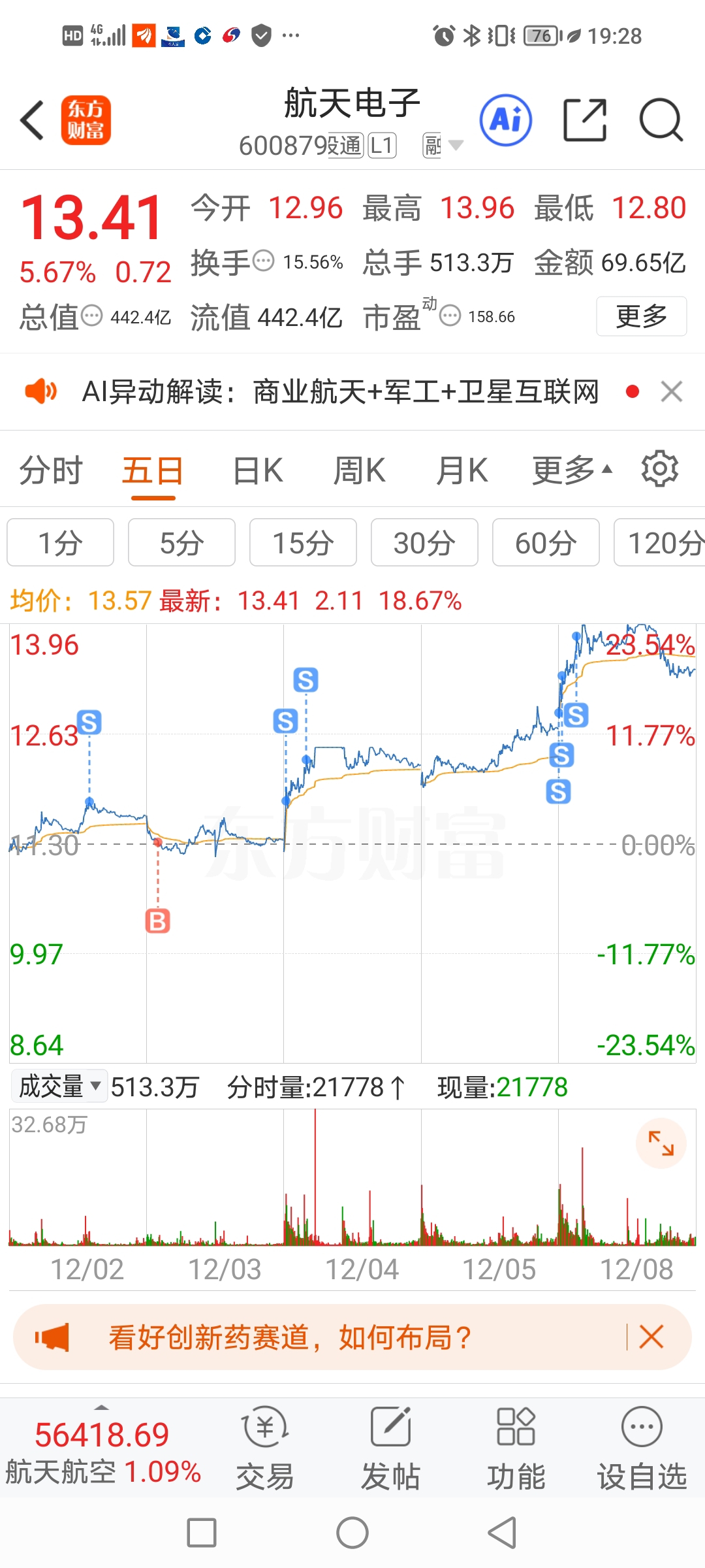 $航天电子(SH600879)$ 还以为它今天会涨停呢,原来没有!各种卖,干到清仓了