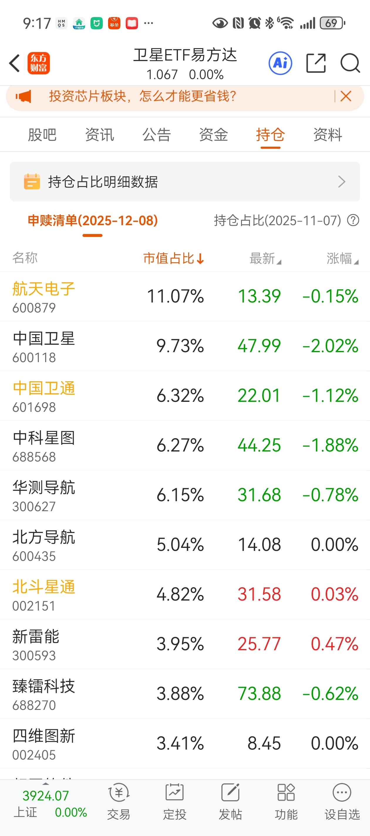 $航天电子(SH600879)$ 航天卫星系里面最正宗的,机构扎着游资不好炒。易方达最新发行的航天卫星ETF,11%最高权重。
