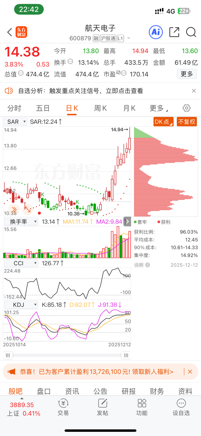 $航天电子(SH600879)$ #收盘点评# #复盘记录# #股市怎么看# #周度策略# #投资干货#