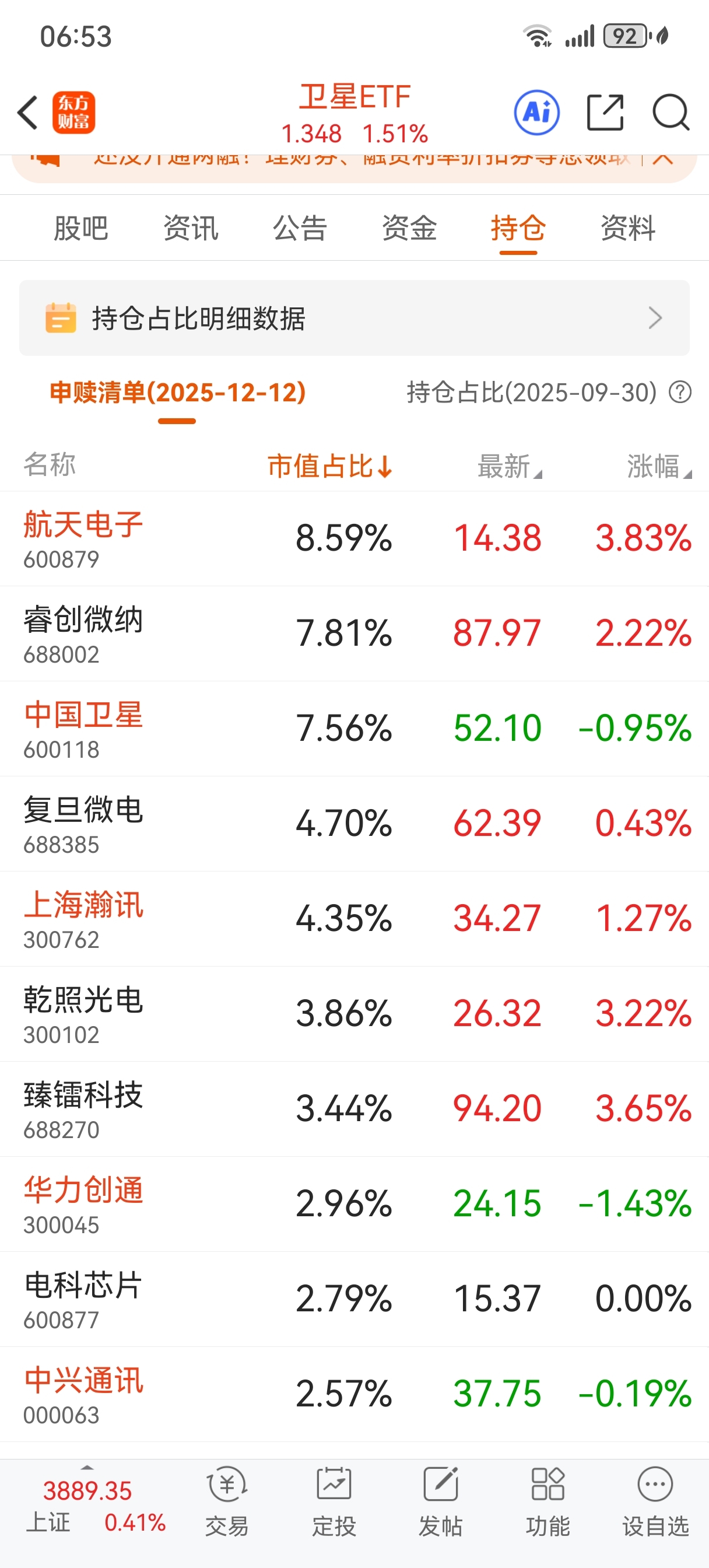 几个卫星ETF持仓,航天电子都是增加且持仓排第一!说明什么???