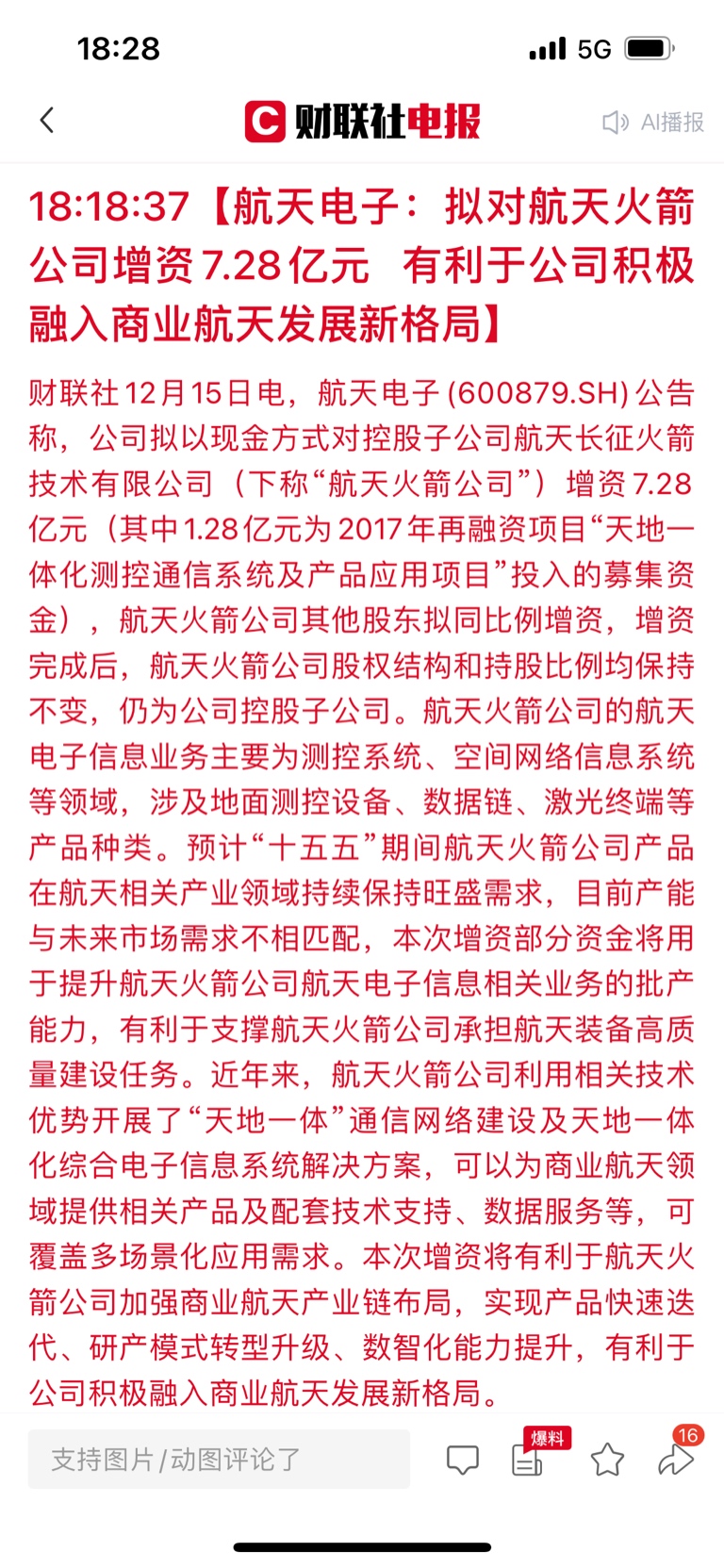 $航天电子(SH600879)$ 卖飞了明天不知道能不能买到