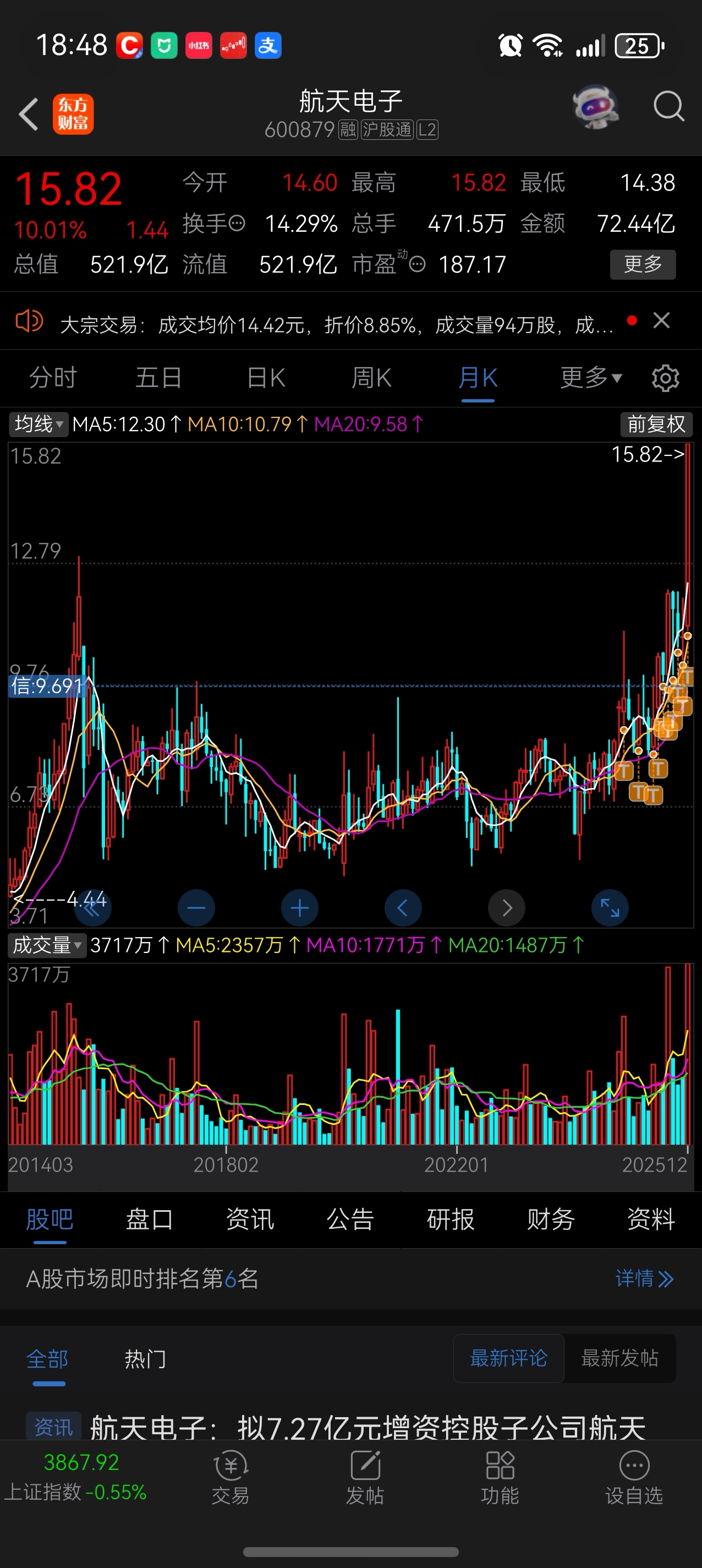 $航天电子(SH600879)$ 横了10年,终于迎来了春天
