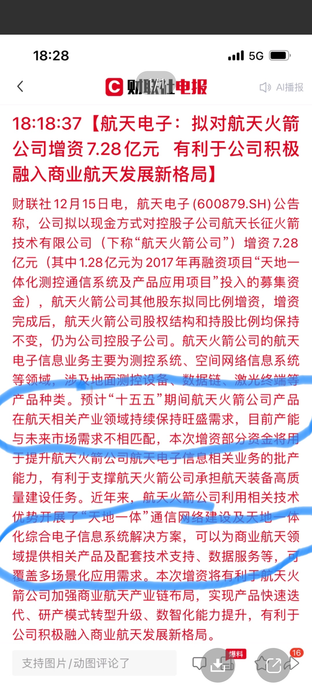 $航天电子(SH600879)$ 几个意思?