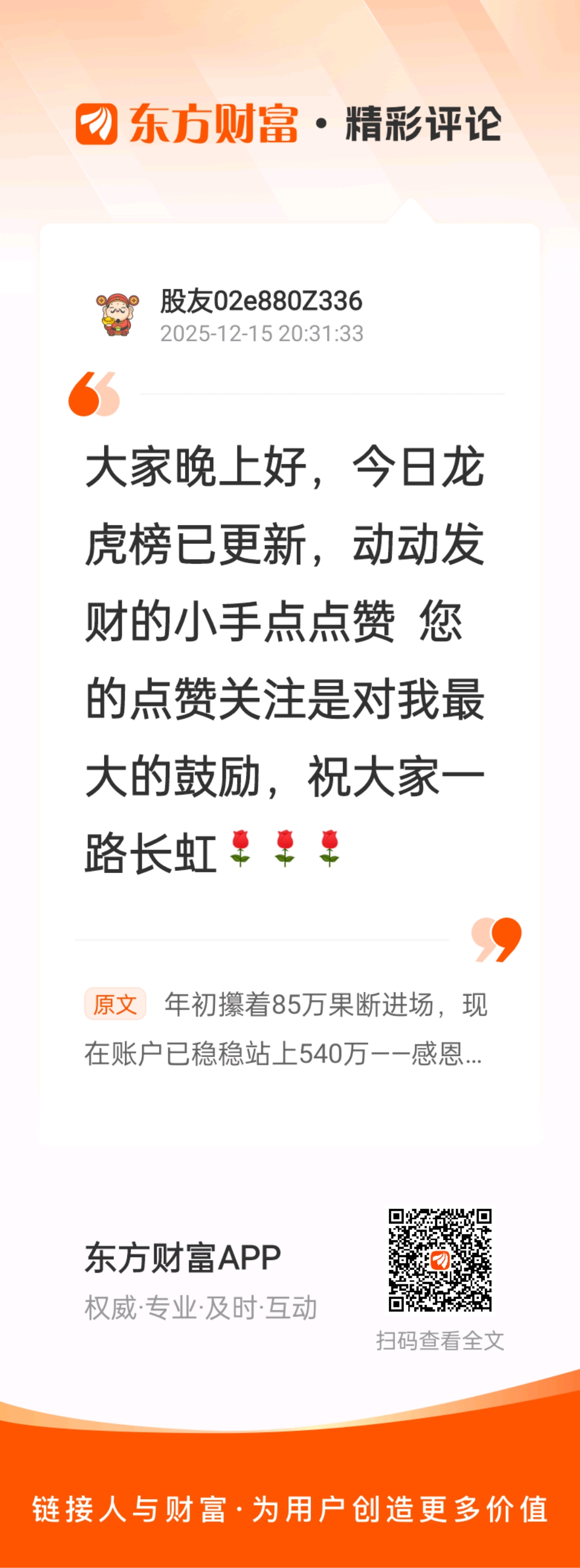 年初攥着85万果断进场,现在账户已稳稳站上540万——感恩AI板块的趋势馈赠,更庆幸自己踩准了每一波主线轮动节奏! 同行的朋友,近期最少也收获了27个点收益,实操思路、建仓时机每日实时更新,这波闭眼可冲的机会,别再错过!
