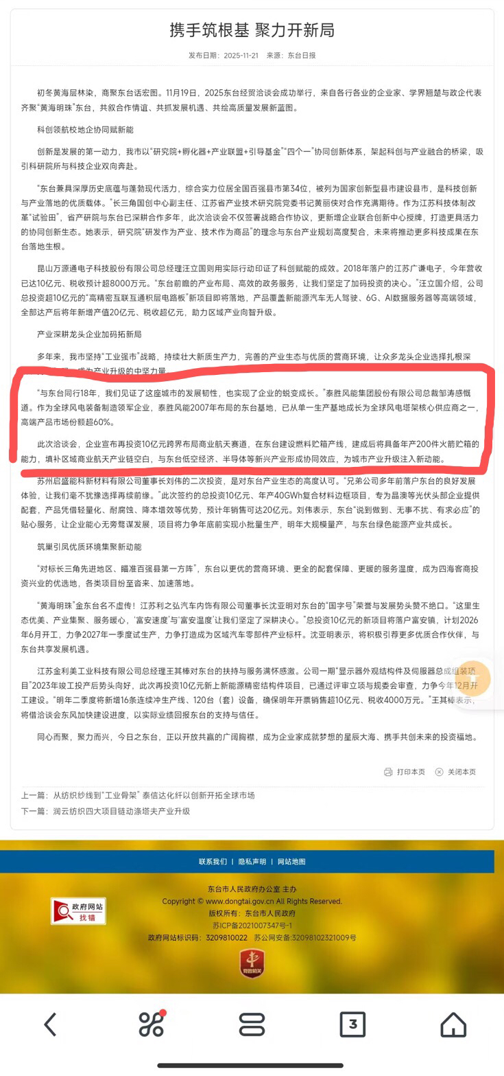$泰胜风能(SZ300129)$ 投资十亿元跨界布局商业航天赛道,消息来源为政府官方网站。