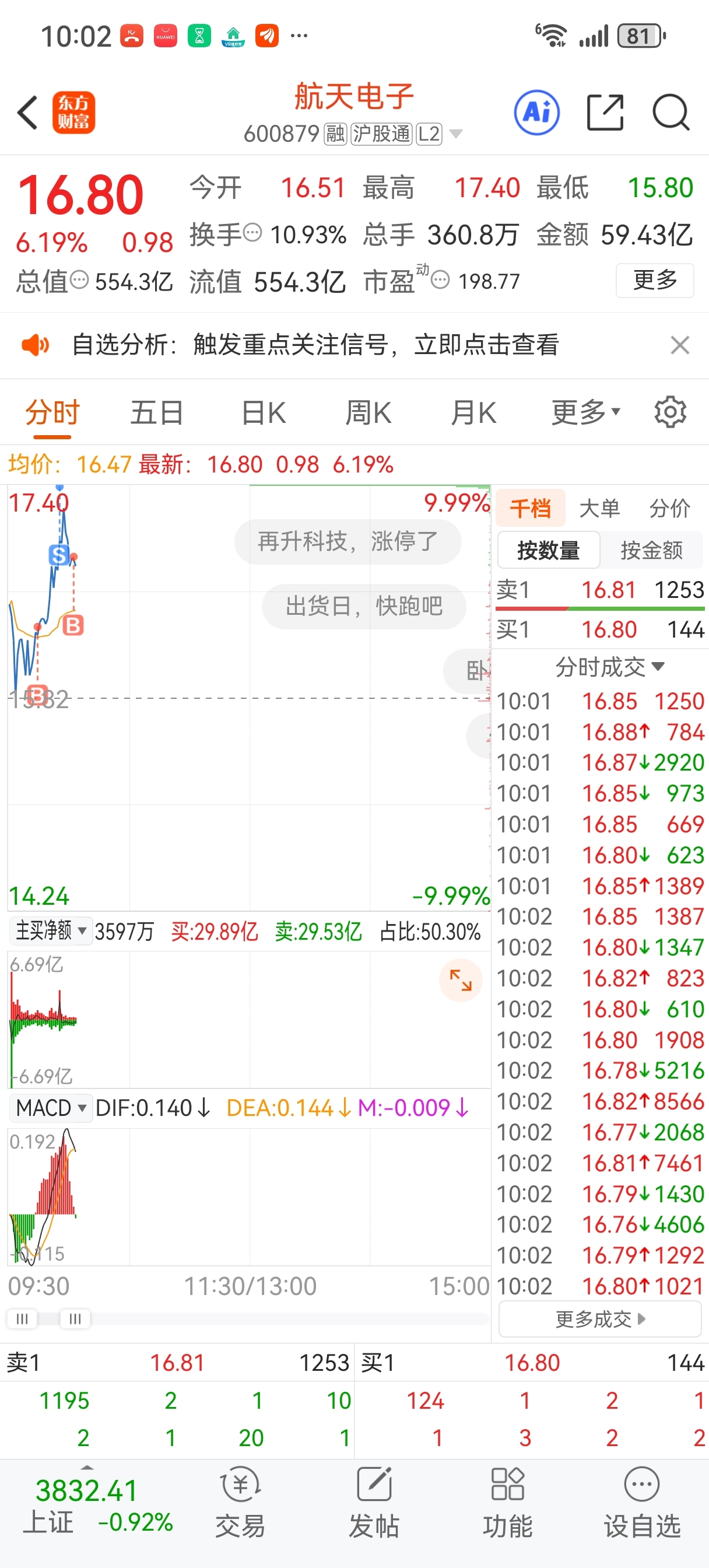 $航天电子(SH600879)$ 涨停把加仓的t了