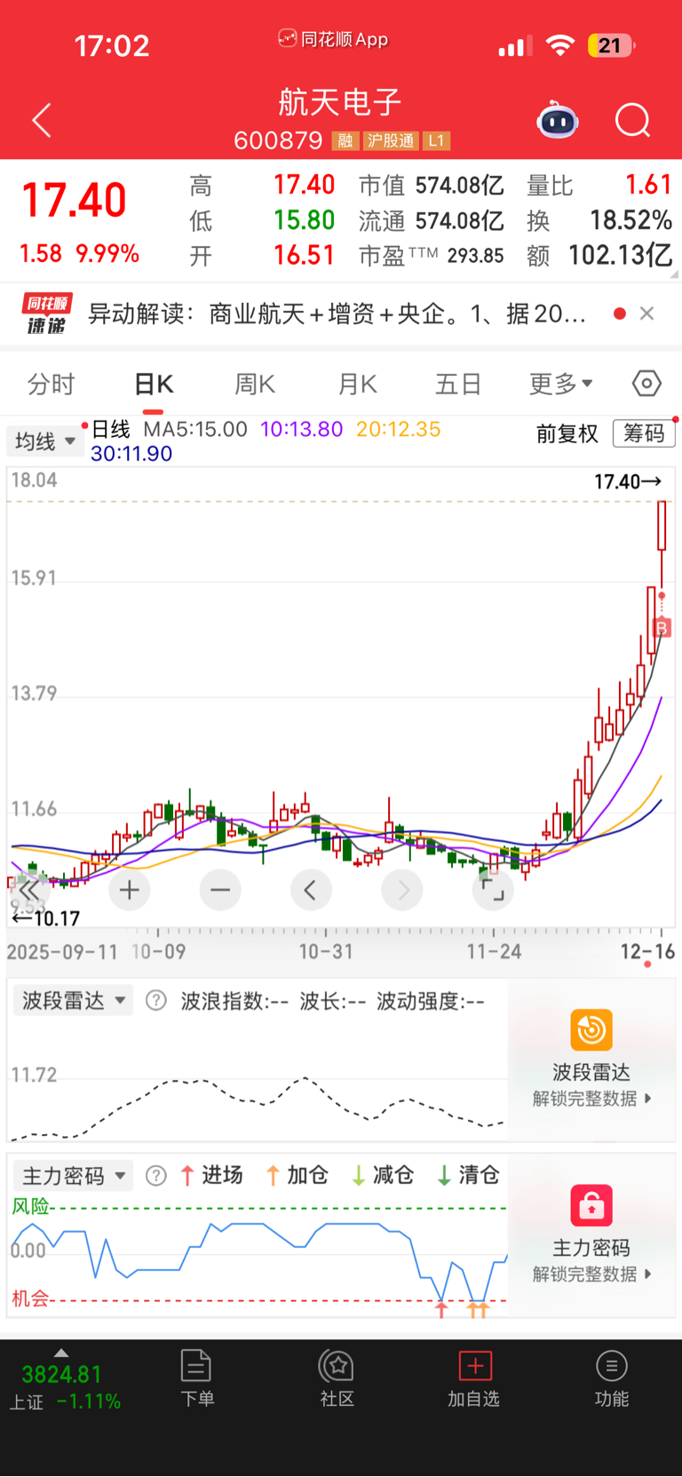 $航天电子(SH600879)$ 下午就感觉这手法是群总来了。。 果然是。。。差点上不了车