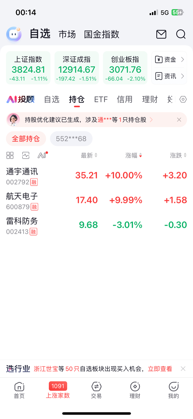 $航天电子(SH600879)$ $永辉超市(SH601933)$ $航天发展(SZ000547)$ 手里三个航天票,希望明天航天还能坚挺,不然就不好玩了