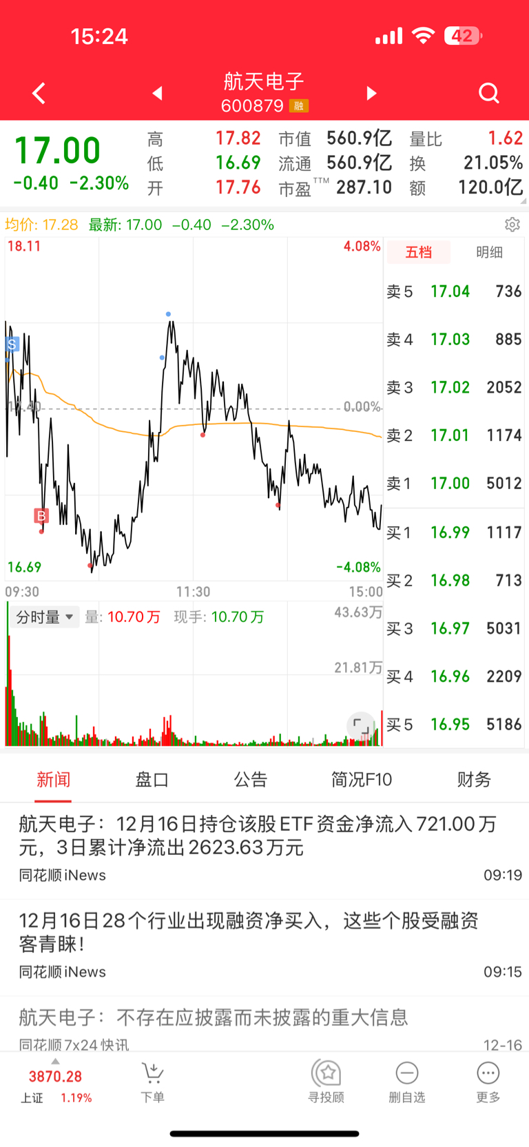 $航天电子(SH600879)$ 跌2个点一大堆唱空狗出来了