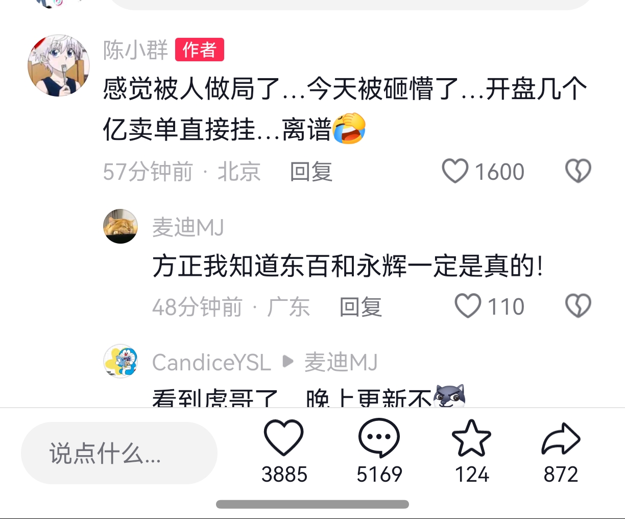 温馨提示: 1.根据《证券法》规定,禁止编造、传播虚假信息或者误导性信息,扰乱证券市场;2.用户在本社区发表的所有资料、言论等仅代表个人观点,与本网站立场无关,不对您构成任何投资建议。用户应基于自己的独立判断,自行决定证券投资并承担相应风险。《东方财富社区管理规定》