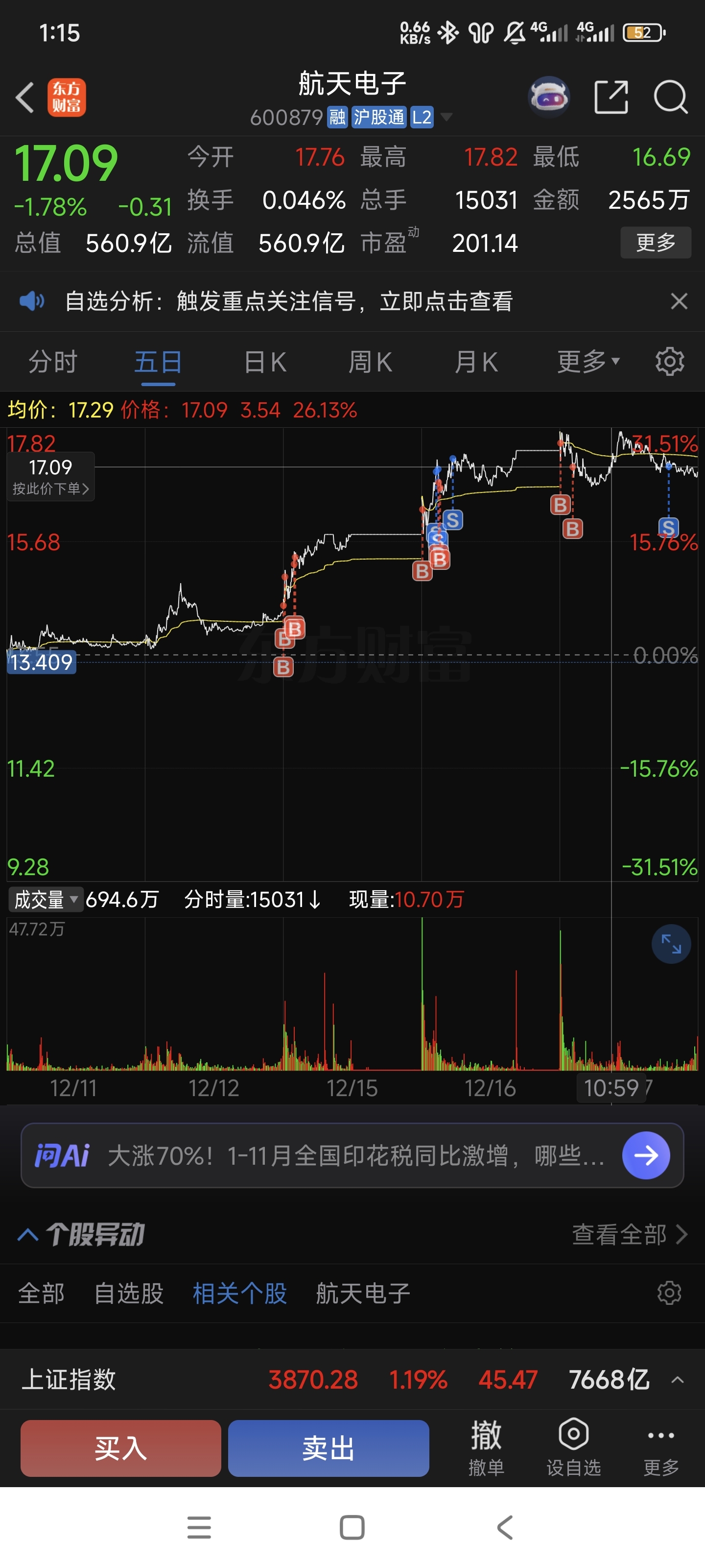 $航天电子(SH600879)$ 上午还格局了一下,下午如果不是大盘启动把资金吸走了估计还是还是有机会的,资金高低切了,13.4的成本目前28个点的盈利,9898应该t了部分,感觉商业航天还是主线,主力估计不想走太猛,拿着呗