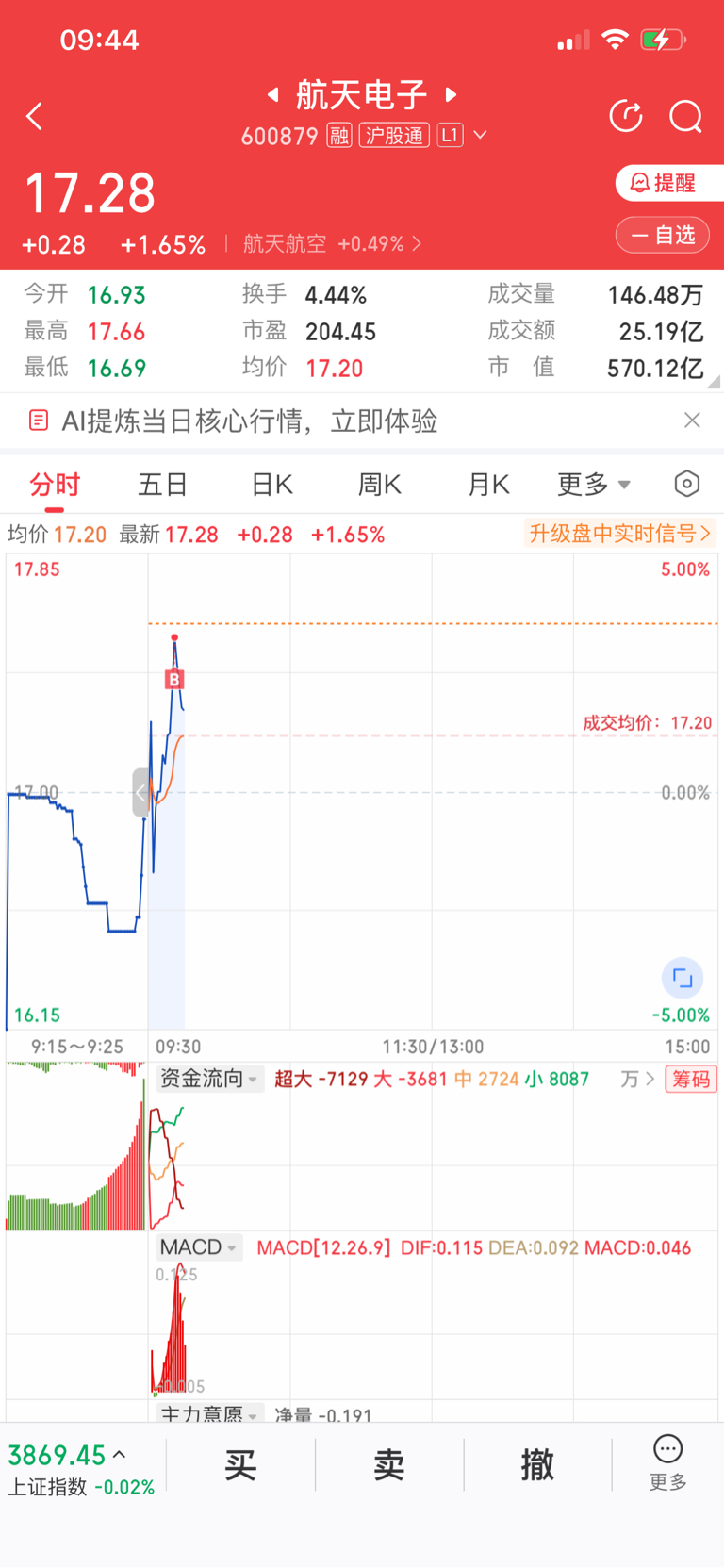 $航天电子(SH600879)$ 这就把我挂山顶上了???