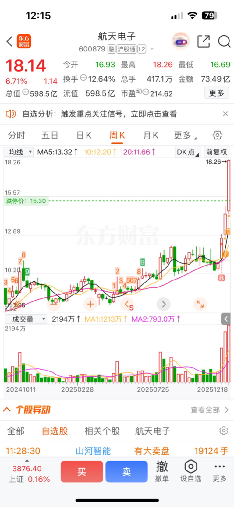 $航天电子(SH600879)$ 大家中午好,我一直都在,昨天航天分化,资金选择锂电和AI硬件去做了一手套利,航天电子作为最正宗的商业航天,曾用名也叫“火箭股份”,是航天里面唯一走的慢还没翻倍的,航动跟航机电都一倍多了,就连二波启动的西部材料跟西测测试都10天翻倍,现在航电作为新容量中军,航天第九院,七亿增资火箭发展,现在正是主升浪趋势,我的目标价21!加油