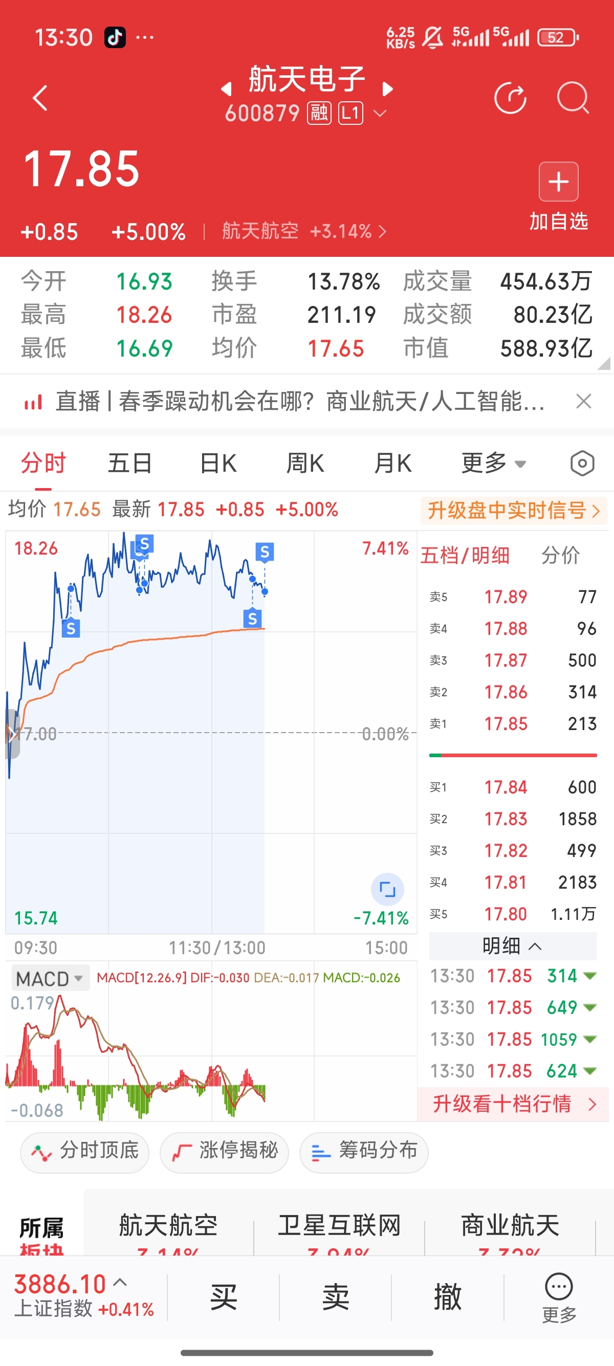 $航天电子(SH600879)$ 1点半前不涨停我也跑了
