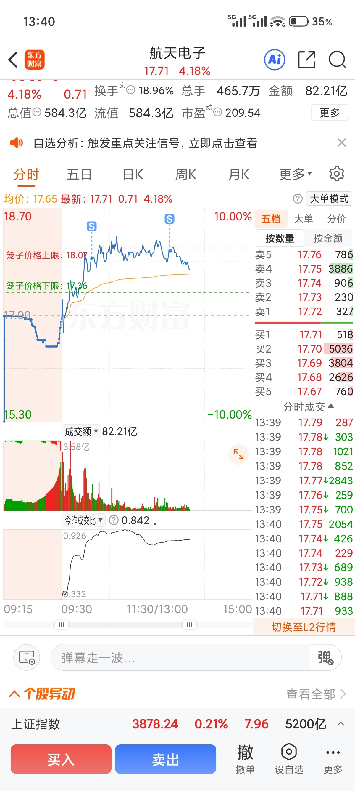 $航天电子(SH600879)$ 知道你今天上不去 但是已经很强了 先溜了 留下的兄弟接着吃肉 后面再接回来