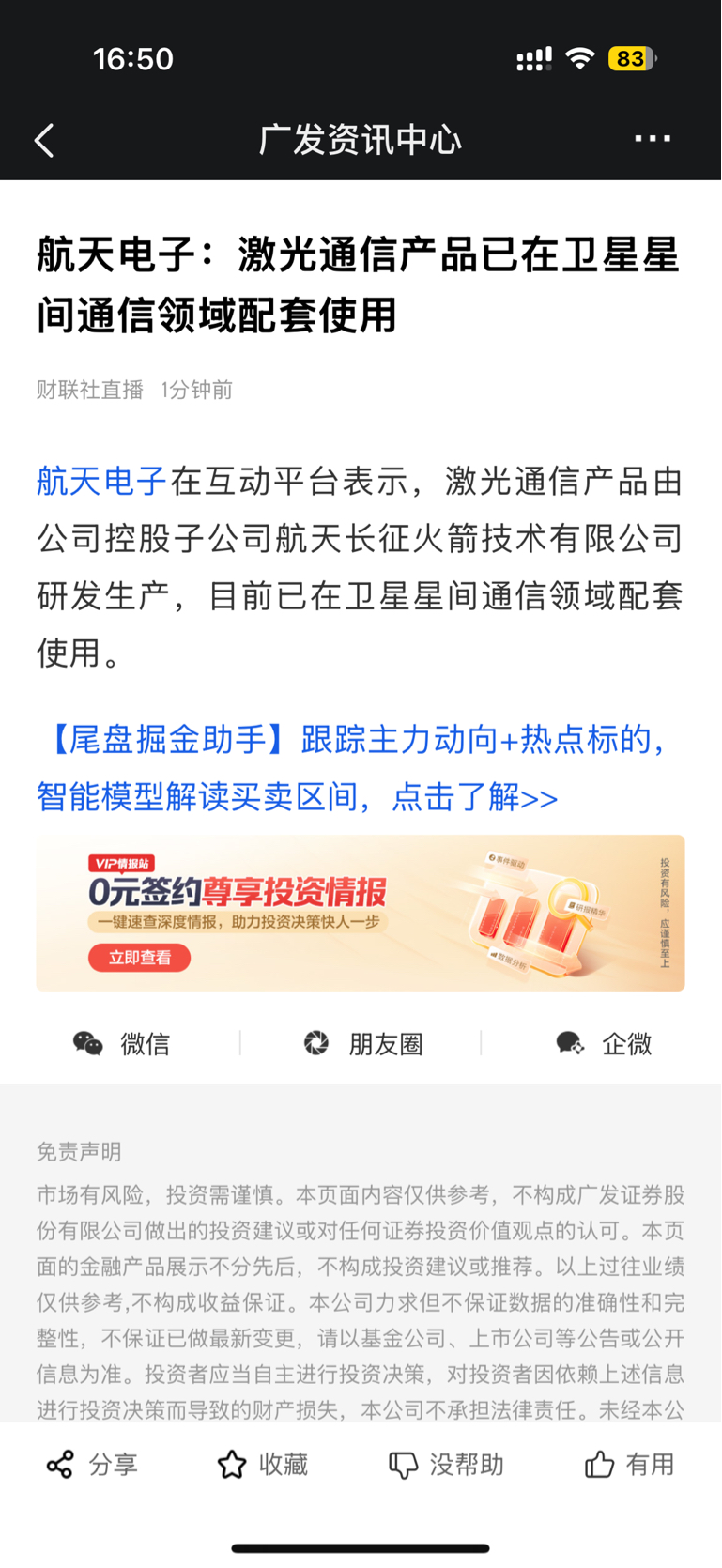$航天电子(SH600879)$ 这是利好吗?