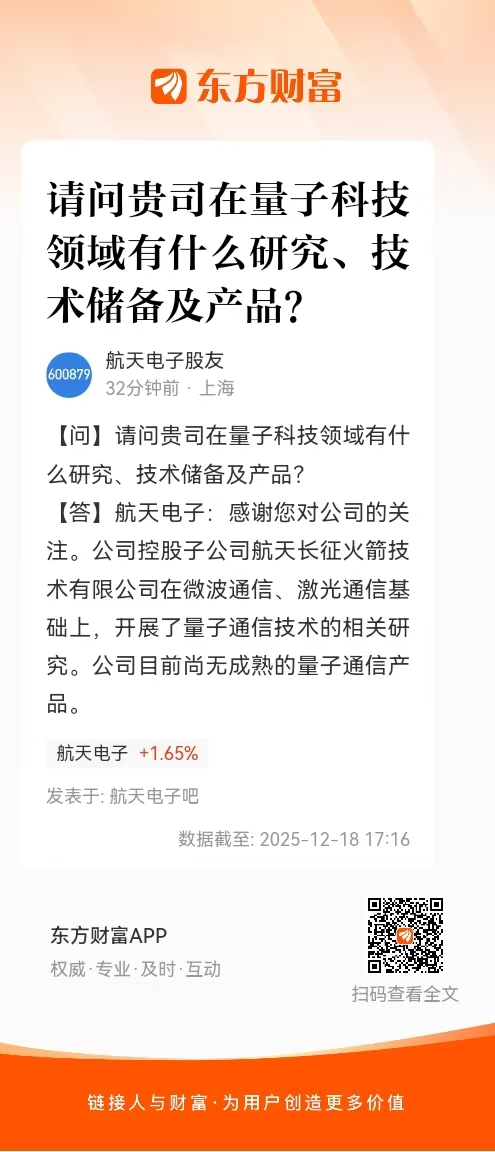 今天董秘加班了,一下子回答了15个问题,就“激光通信”“量子科技”“长征12甲”