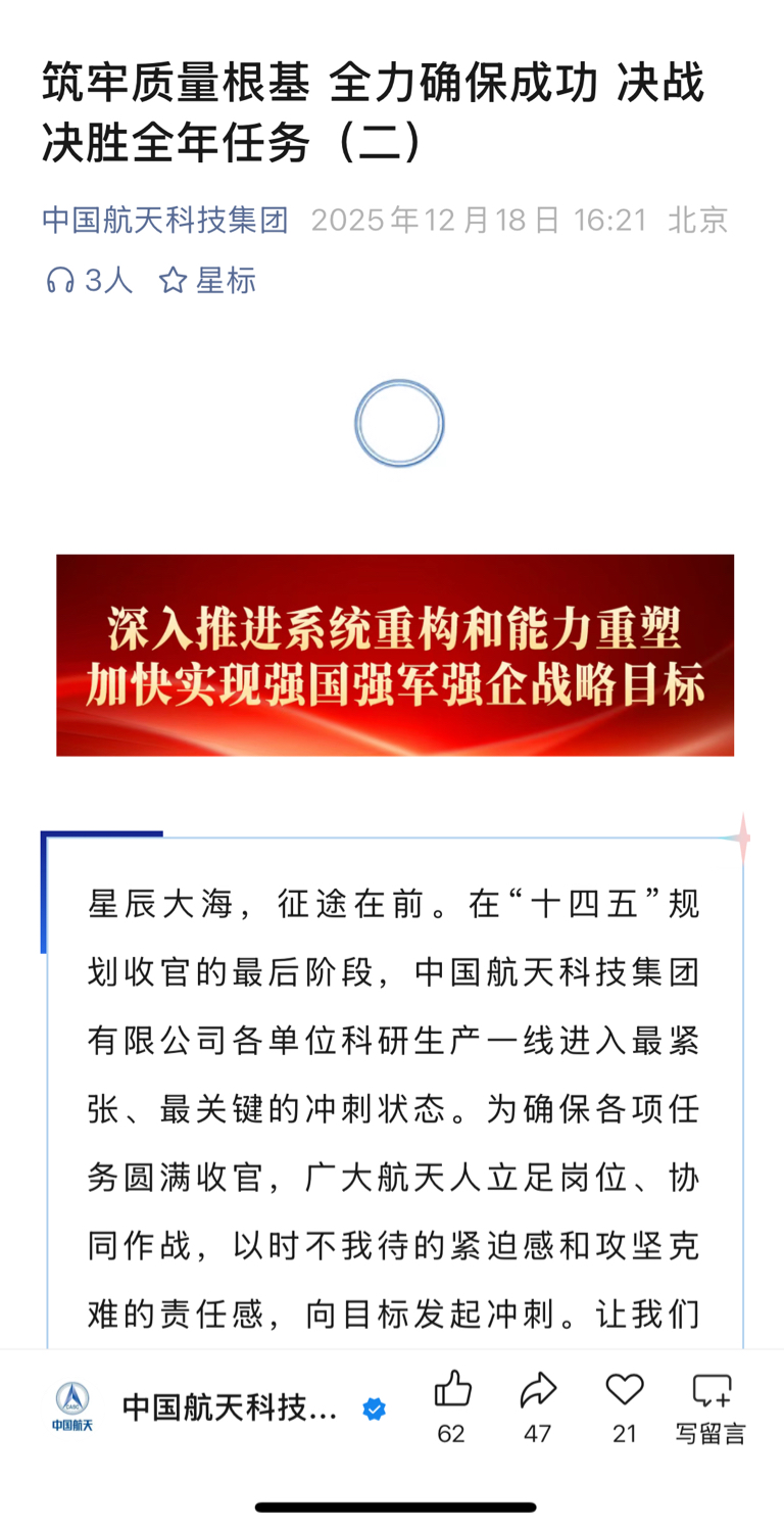 $航天电子(SH600879)$ 全力以赴,确保成功