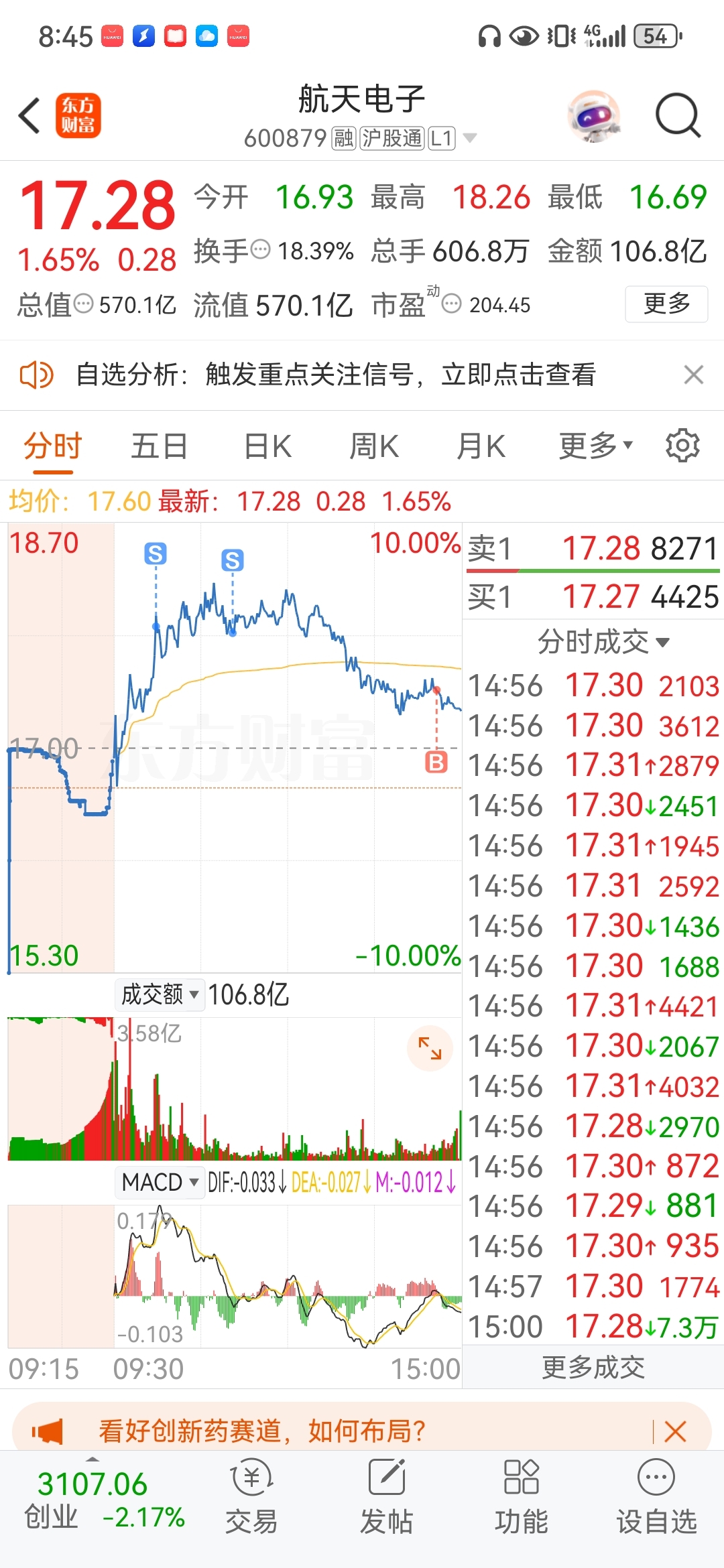 $航天电子(SH600879)$ 卖不在最高,买不在最低,有机会就T。此股看到30以上,不以个人意志为转移。